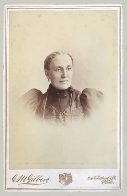 DeleteA K P Trask can be documented as working at 40 N Eighth, in Philadelphia, between 1867 and 1875. So unless he was using up old pre-printed stock cards after he had moved his studio, the photo was taken between those dates. https://cabinetcardphotographers.blogspot.com/2018/05/albion-k-p-trask.html