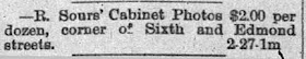 St Joseph (MO) Gazette Herald small ad for R Sours at corner of Sixth